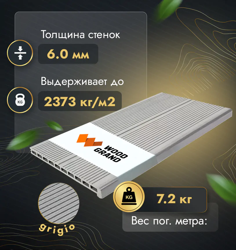 Террасная доска из МПК – это по-настоящему «каменная доска» - революционный материал в загородном строительстве. В основе доски из МПК - минеральная мука и связующие полимеры.